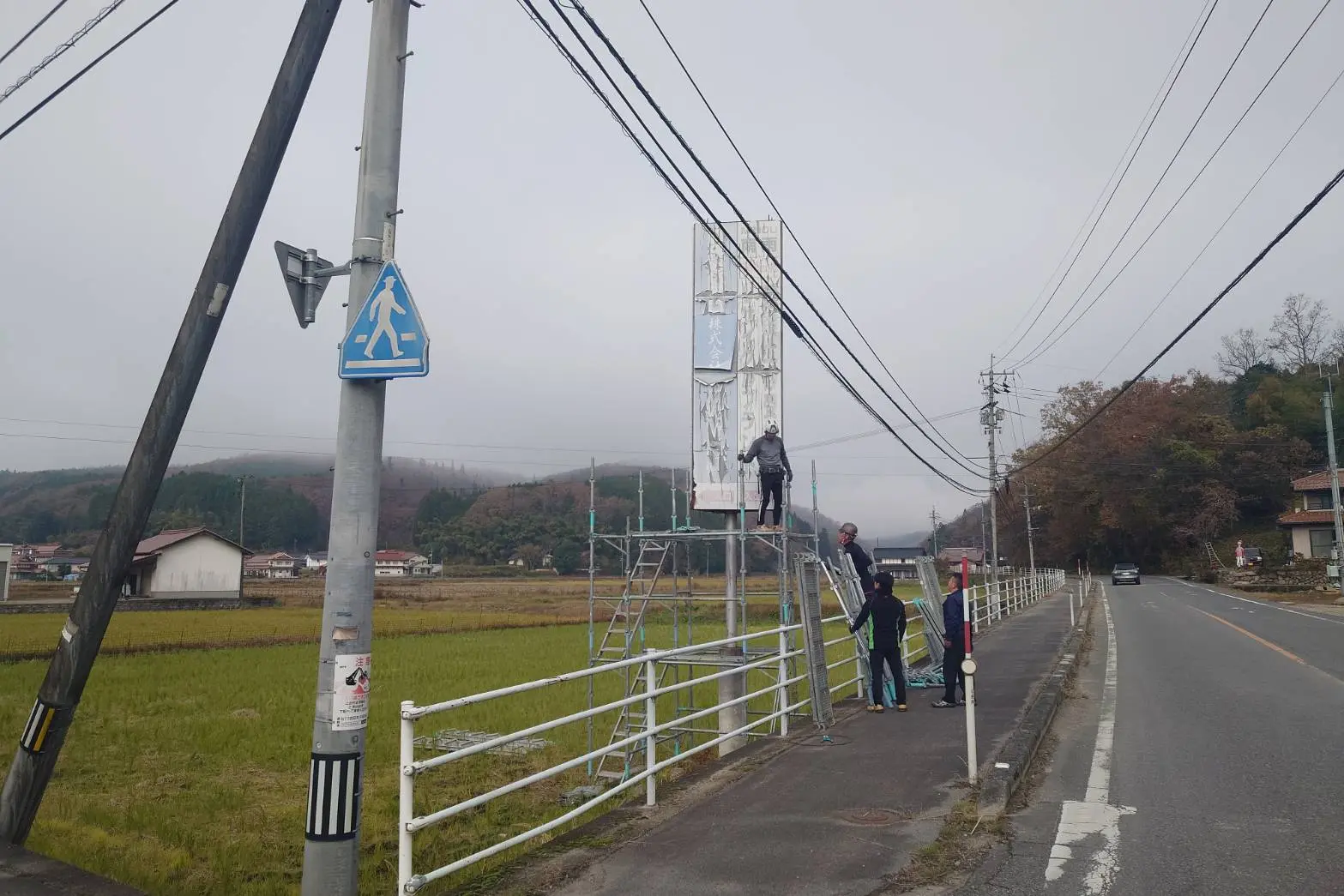 ちなみにお仕事を請ける際、現地調査にいかせていただくのですが、基礎や看板を貼る土台部分の耐久力などもチェックしています。看板の最大の敵は自然ですからね。風や腐食で飛んだり折れたりしてはいけませんから。